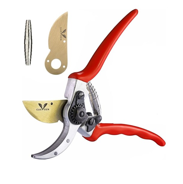 - HIGH QUALITY TITANIUM BLADE -The heavy-duty titanium coated steel blade decreases friction of blade and makes for easier cutting offering long-lasting protection against rust corrosion. With these sharp blades, pruning has never been smoother. We added an anvil blade with sap groove so that the blade won’t stick when cutting sappy wood