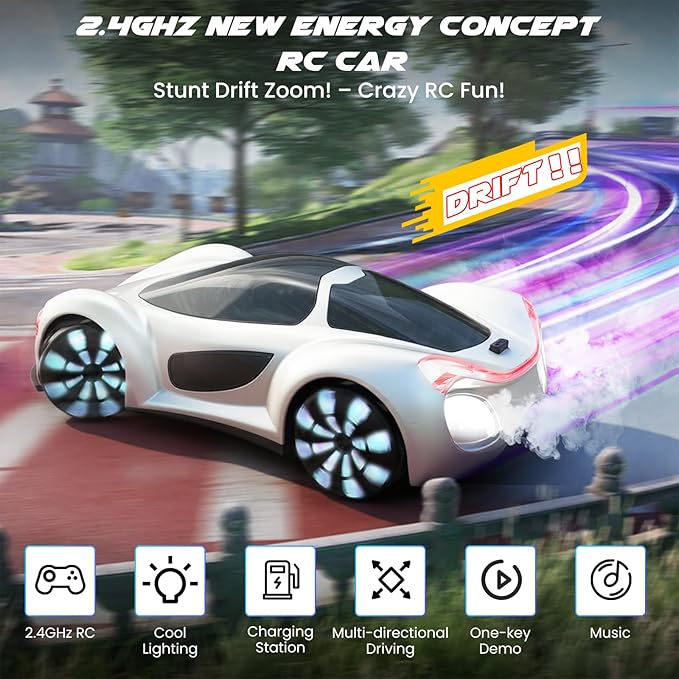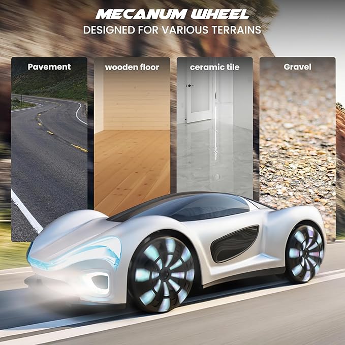 - 330 OMNIDIRECTIONAL MOVEMENT & STUNTS: Equipped with advanced Mecanum wheels, this RC car performs 8-direction movements (forward/backward, sideways, diagonal) and dazzling stunts. Features one-key demo mode, spray mist effects, and dynamic LED light shows for immersive play