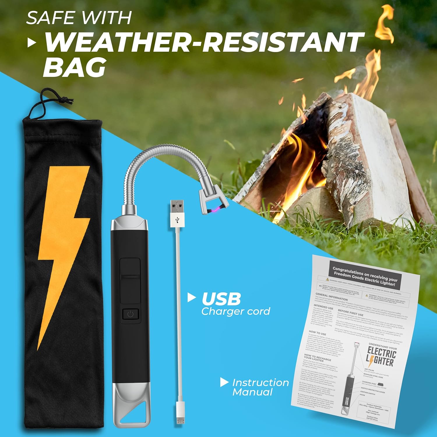 Powerful yet safe design! Our arc lighter is designed with multiple safety features with your protection in mind. The safety switch keeps fingers safely away from the flame. The windproof lighter has an auto power-off feature that activates after 6 seconds to keep you safe. The flameless lighter will not light while charging, and has overcharge and overheating protection features. The flameless lighter rechargeable battery’s display lets you know when you need to recharge. Our high quality battery lasts for up to 600-800 uses!. Designed with a lightweight non-slip handle to make holding easier. We have also designed our plasma lighters waterproof to make less noise than a regular cigarette lighter. Whether an avid outdoorsman, chef, or a candle-lover, this waterproof lighter is perfect for you. With a windproof design, this dual arc lighter will work under any conditions! Our electronic camping lighter is portable and great for travel. Bring hiking lighters windproof survival along on your next hiking or camping trip. It also works well for stoves and grills. Stop wasting time and money on refilling lighter fuel or using disposable plastic lighters! Give yourself an ecofriendly tactical lighter option. Our lovely survival lighter also makes a great gift! Every outdoor lover should own a plasma lighters rechargeable waterproof. Our wind proof lighter has multiple safety features designed for your protection. The convenient, easy to use survival lighter waterproof windproof is designed with non-slip hold. Our plasma arc lighter is windproof and splashproof, making it the perfect outdoor tool. Save money and be more eco-conscious with our rechargeable hiking lighter. Never buy lighter fluid again! If you decide our windproof lighter arc isn’t for you, you can return it for a full refund or have us send a replacement lighters windproof waterproof . Simply send us a message and we’ll send you a new arc lighters rechargeable.