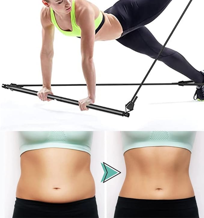 - Full-body workouts equipment– Home workout equipment and multifunctional pilates bar can be used for all types of core exercises like stretching, weightlifting, lunges, and squats, as well as targeting muscle groups in your back, legs, hips, shoulders, or arms.