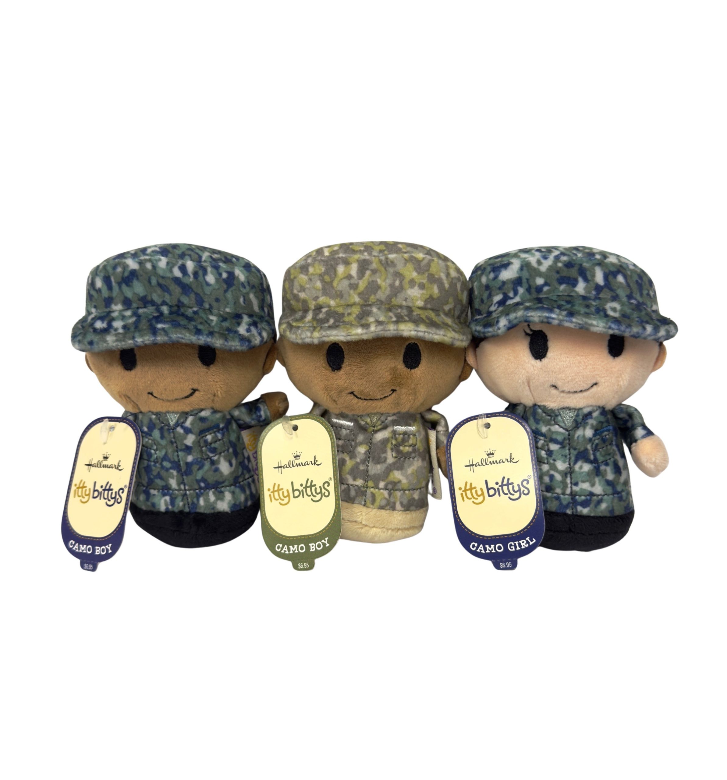 Hallmark Itty Bittys Military Soldiers – 3 Assorted – Camo Girl and 2 Camo Boys – 4.5″ – Item #8427