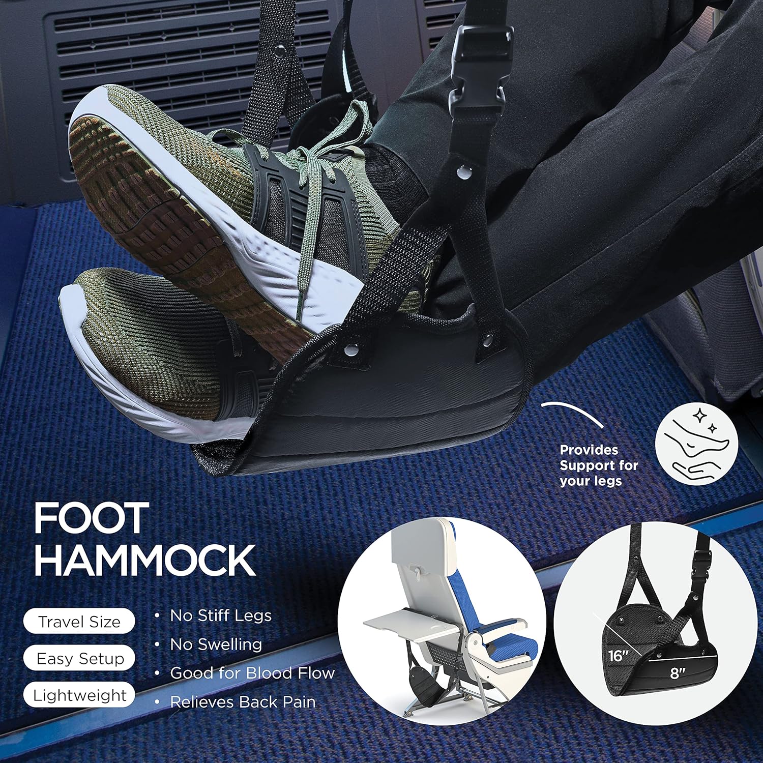 - Easy-Setup Foot Hammock: Elevate your legs on most airline tray tables with a quick wrap-and-clip design. The adjustable strap lets you choose your ideal height to reduce strain and improve comfort on long flights.
