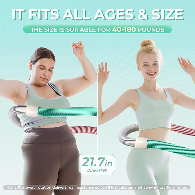 - Burn Calories & Strengthen Core: As a weighted hula hoop for weight loss, every spin activates your waist, abs, and core muscles. It helps burn calories efficiently while shaping a slimmer, stronger body.