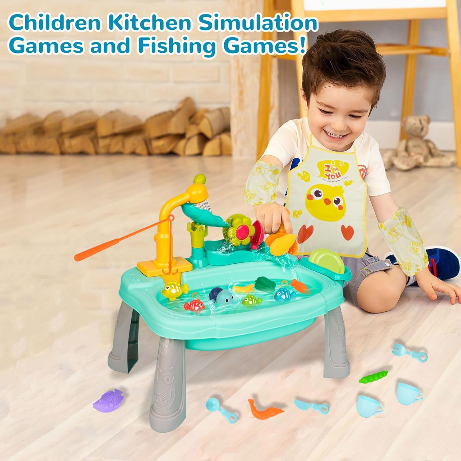 - Simulation Role-Playing: Designed for one or more players to engage in role-playing,your kids can enjoy the kitchen game while simulates what real fishing looks like. Product size: 14.5 x 9.4 x 11.6 inches.This set with colorful kitchen accessories and floating toys, enhancing their awareness of food, thus boosting cognitive and color recognition skills, to develop their hand-eye coordination and body balance ability.