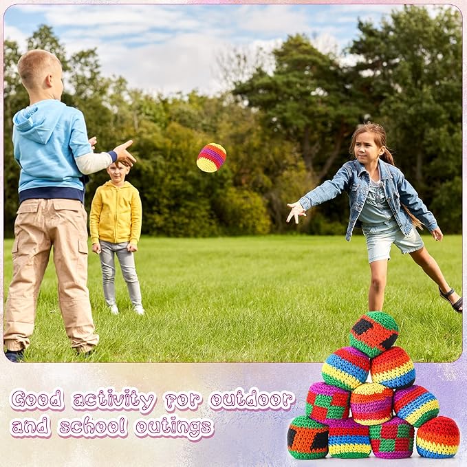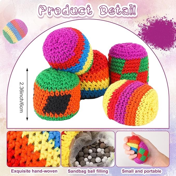 - Wide Range of Applications: these knitted kickballs for kids are suitable for indoor and outdoor use, lightweight and compact, easy to carry out, suitable as a relaxing toy for going out to the beach, camping, travel, parks, schools, birthday parties, Christmas, Halloween and other occasions; They are also funny gifts for students, family, friend, or as a reward for party favors or carnival prizes