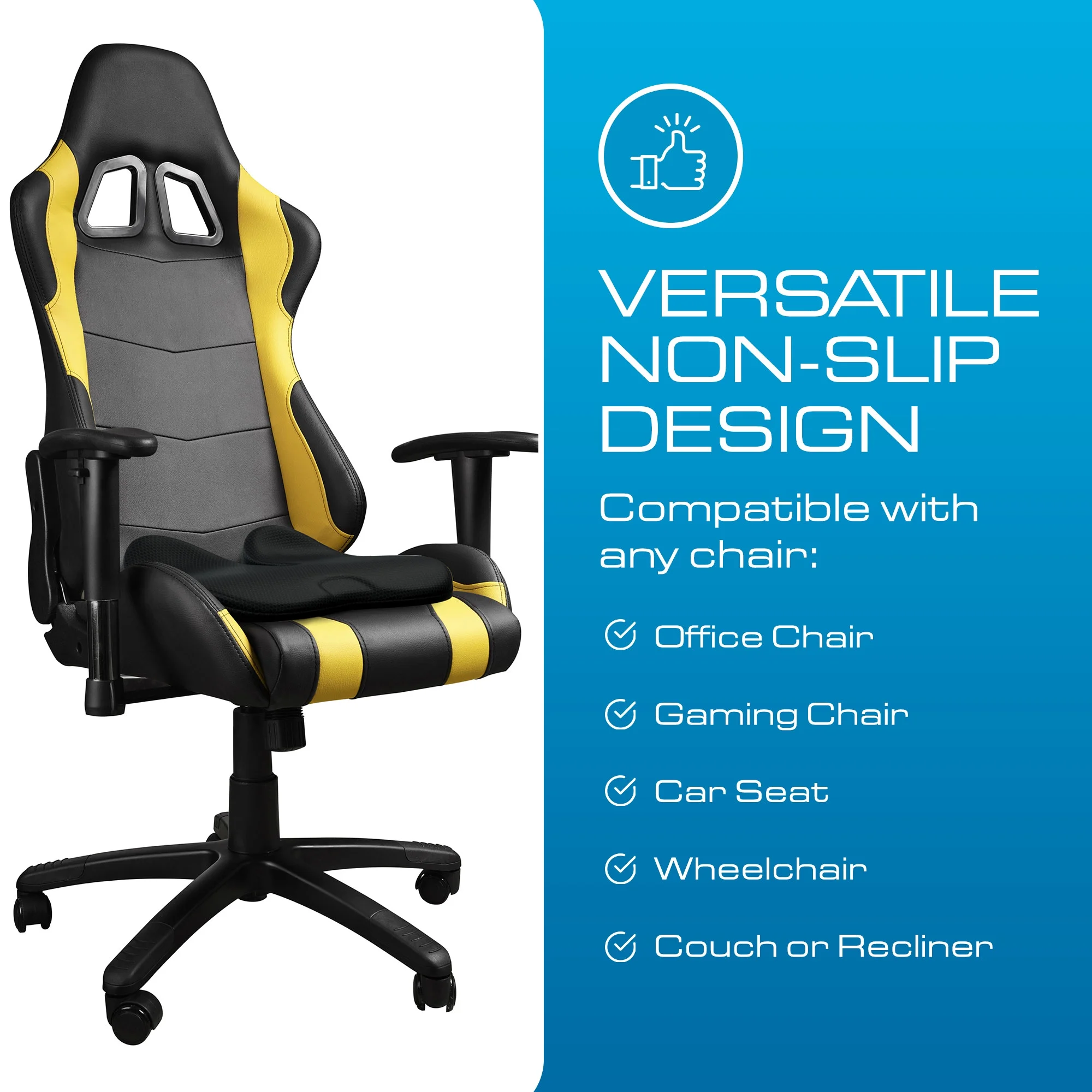 - VERSATILE USES: Promotes proper seating and spinal alignment for hours of comfort. Discover exceptional lumbar support no matter where you sit. Whether in an office chair, gaming chair, car seat, or wheelchair, this butt pillow embraces your body, promoting good posture and ensuring you stay comfortable throughout your day.