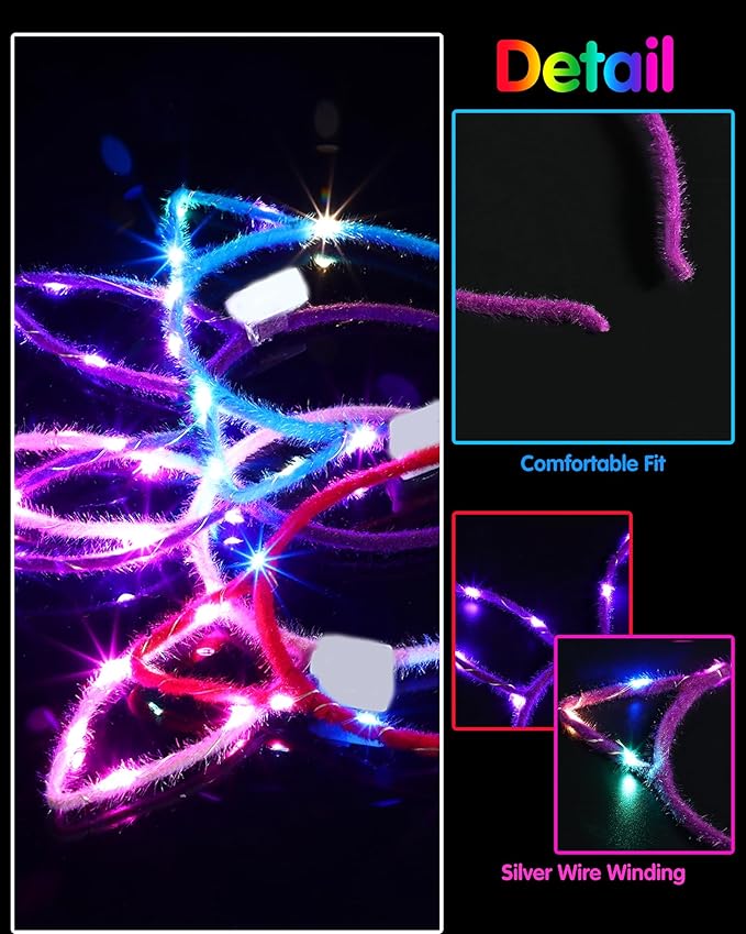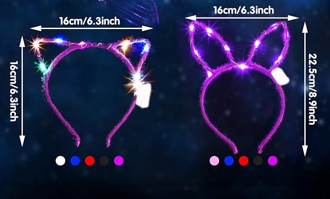 - Suitable occasions: LED cat rabbit headband look great in the dark, making look more charming and eye-catching, adding more fun to the party; They are good for night activities, birthday parties, Halloween, Christmas, dance parties, bonfires and celebrations; can also use them as photo props or stage props