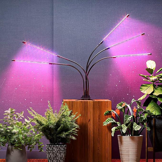- 5 Heads Plant Grow Lights & 150 LEDs: This plant growing lamp consists of 150 efficient grow LEDs (100 red and 50 blue). 5 head plant grow light provide a wider lighting range than traditional 2, 3, and 4 head plant light and increase the intensity of light by up to 100%, allowing your plants to receive more energy.