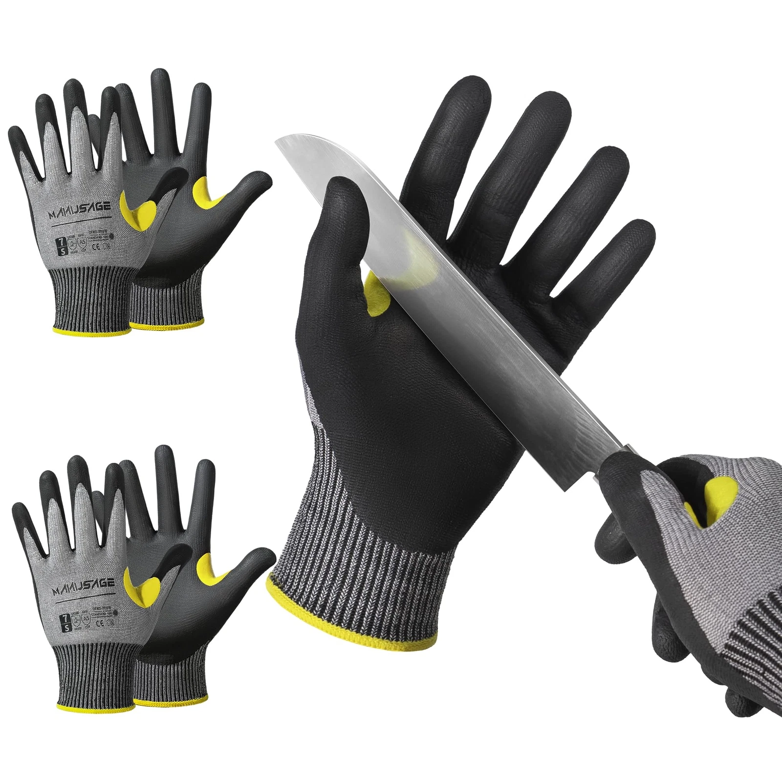 3 Pairs – Manusage Cut Resistant Work Gloves – Yellow reinforcement – Size Large – Item #8820