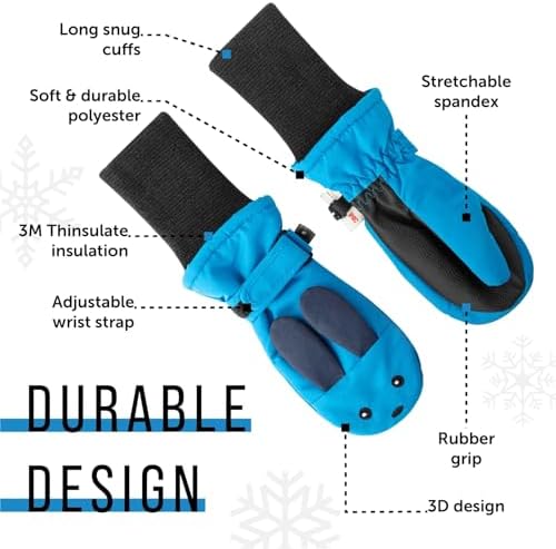 • Enhanced Warmth: These toddler winter mittens feature an elongated inner cuff to tuck inside jackets, creating a warm barrier. Ideal for keeping baby mittens secure and your child’s hands cozy