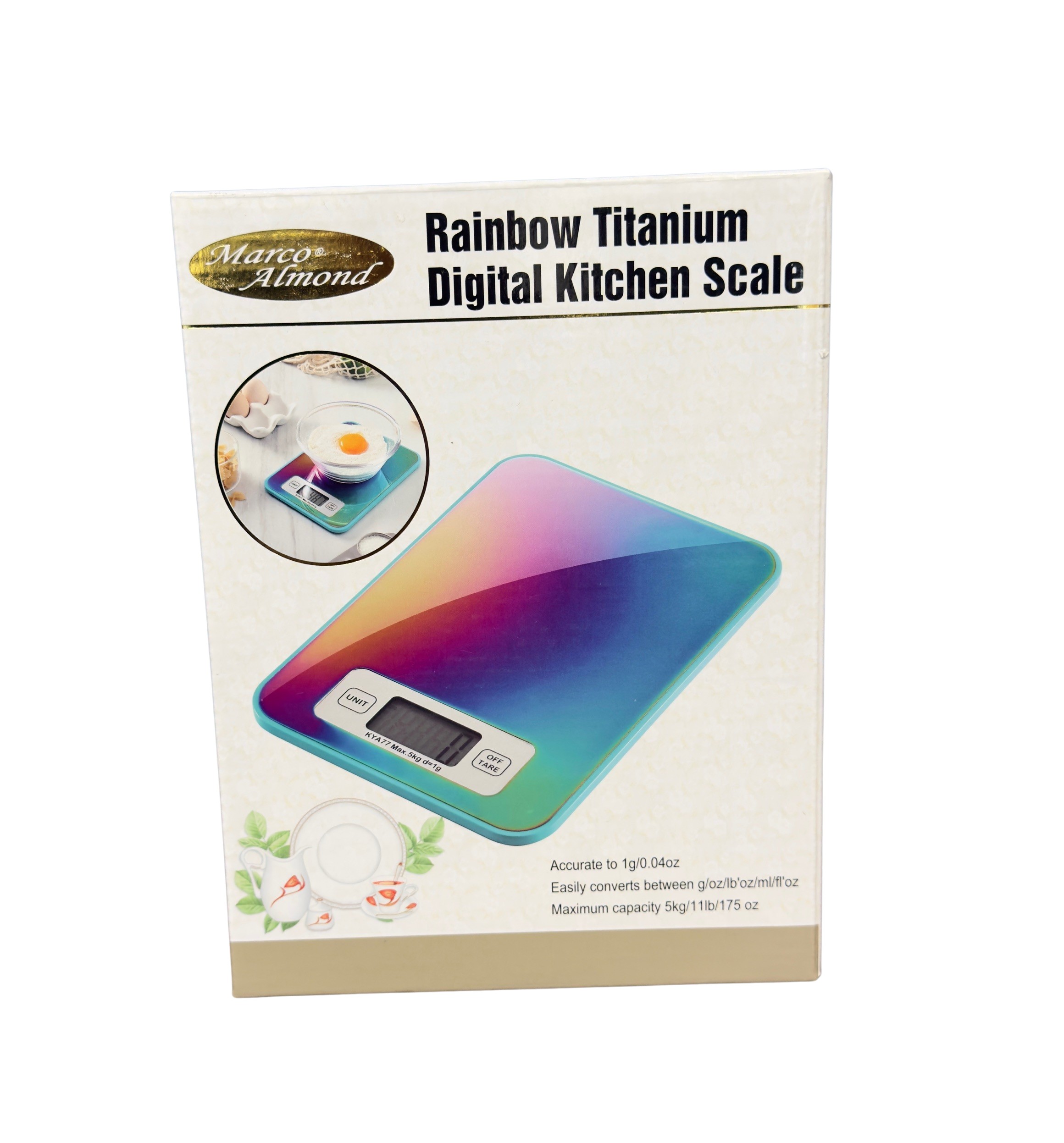 Marco Almond Food Scale – Titanium Coated Rainbow Digital Kitchen Scale – Item #8144