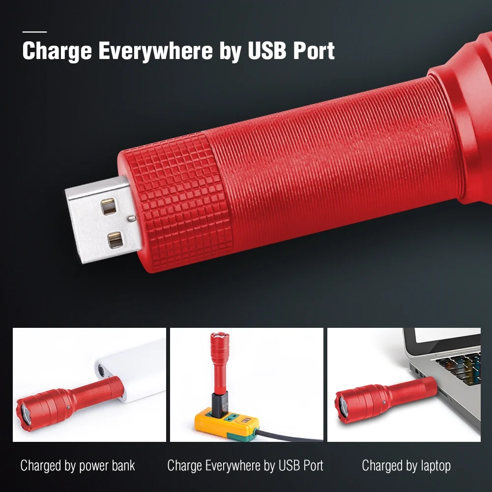 - Powerful Illumination: Delivers 250 lumens brightness with a light distance of 300 meters, powered by a 3.7V, 700mAh rechargeable battery.