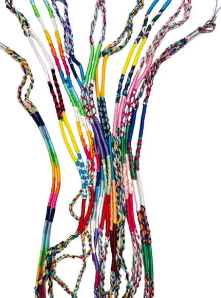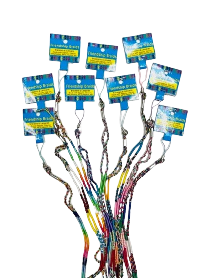 Braided friendship Lanyards handmade by skilled artisans from China. Each varies between 15 inches – 17 inches.