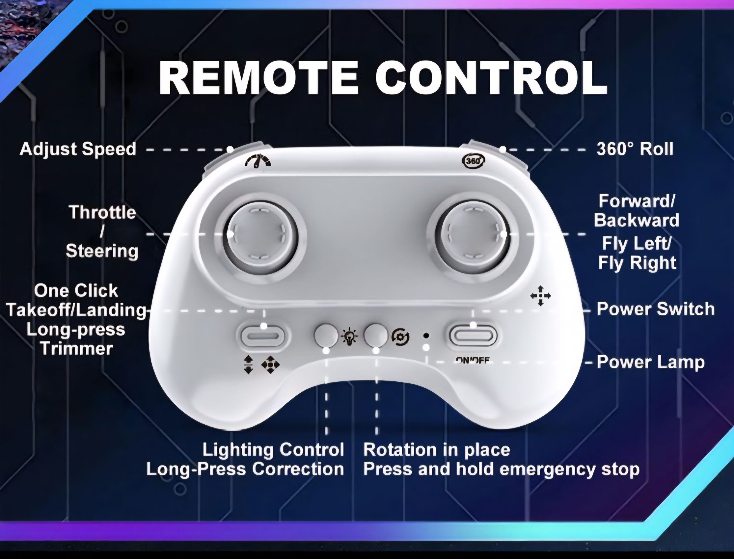 • 2.4G Remote Control – Stable signal with up to 50m control distance.