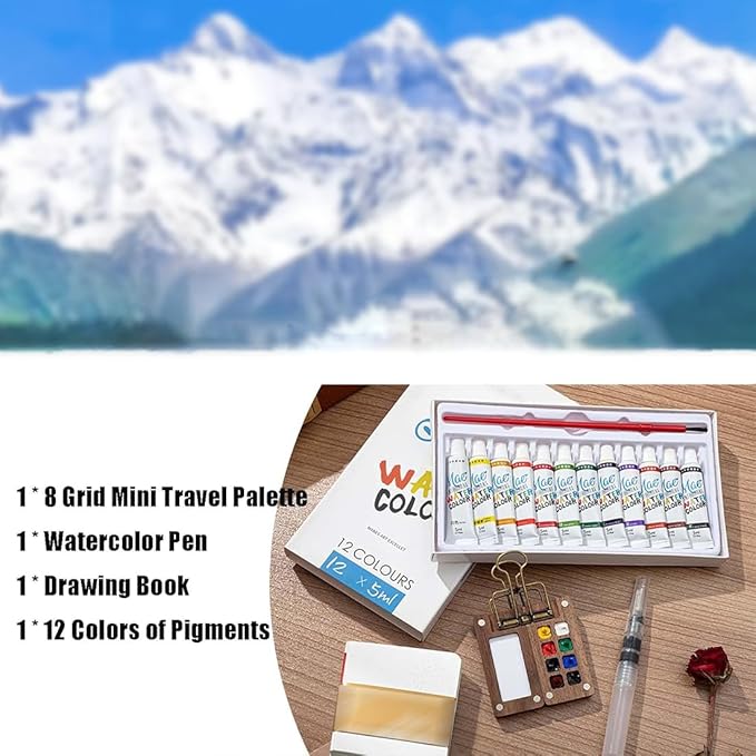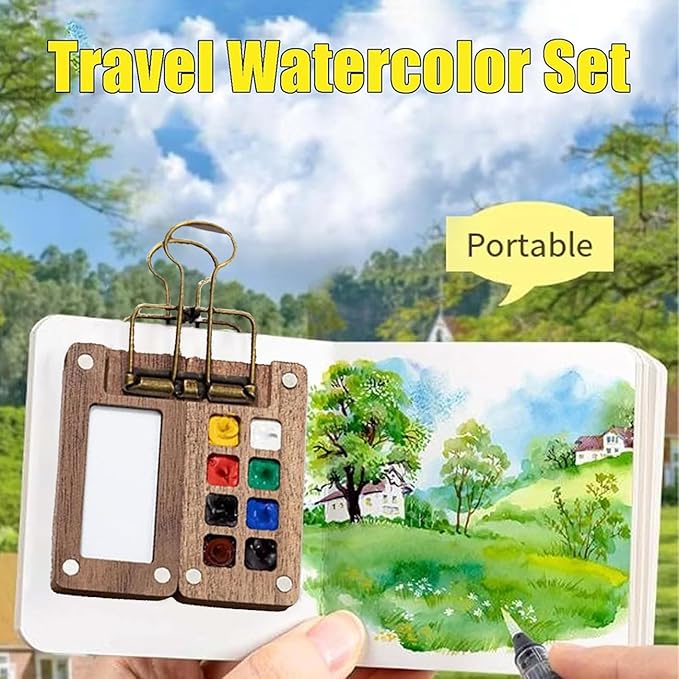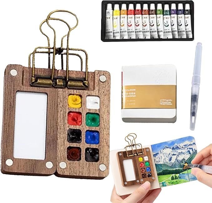 - Mini Watercolor Drawing Board : This watercolor set offers a complete art package, including a watercolor palette, sketchbook, watercolor pens, and metal clips, as well as 12 color combinations. Whether you are traveling or doing other things, you can create stunning watercolor paintings when inspiration strikes