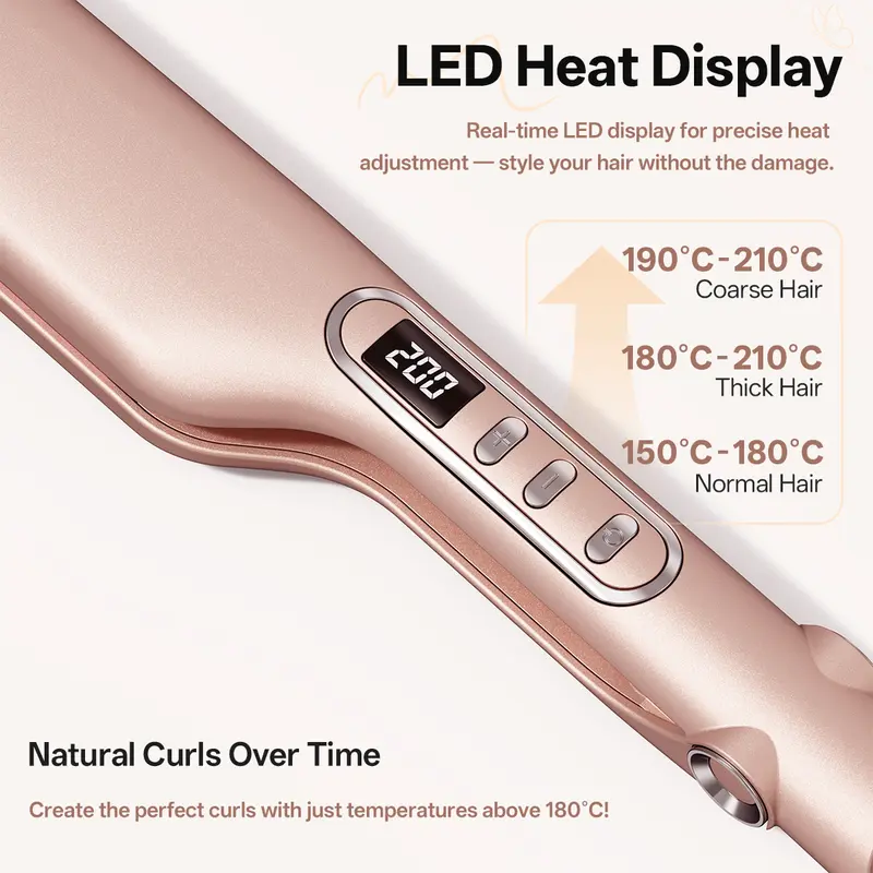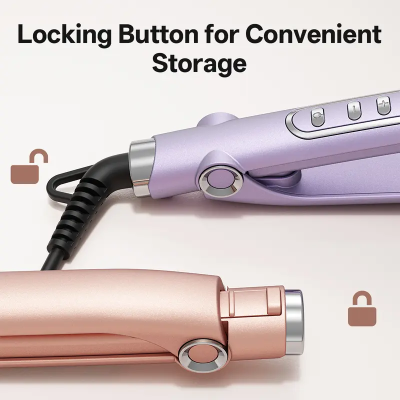 – Fast Heating with Adjustable Temperature: Heats up in just 30 seconds with adjustable temperature settings (100°C–230°C), suitable for all hair types—from fine to thick or coarse hair.