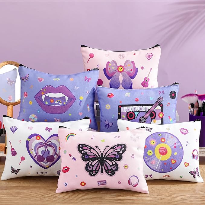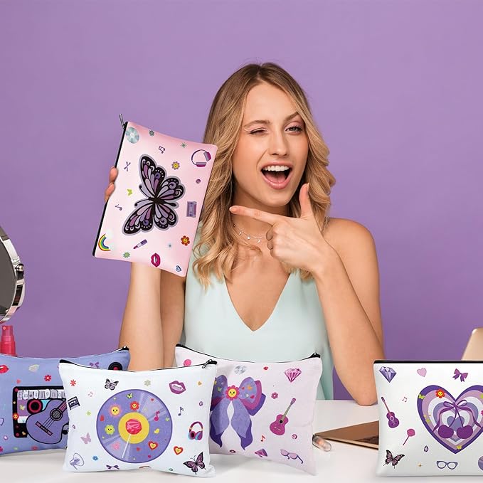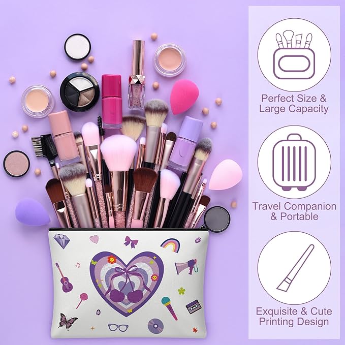 - Singer Theme Design: this concert music makeup bag is designed for music lovers, with classic purple and butterfly elements, pink, purple and white three base colors, highlighting the singer style, making your makeup bag more fashionable and exquisite
