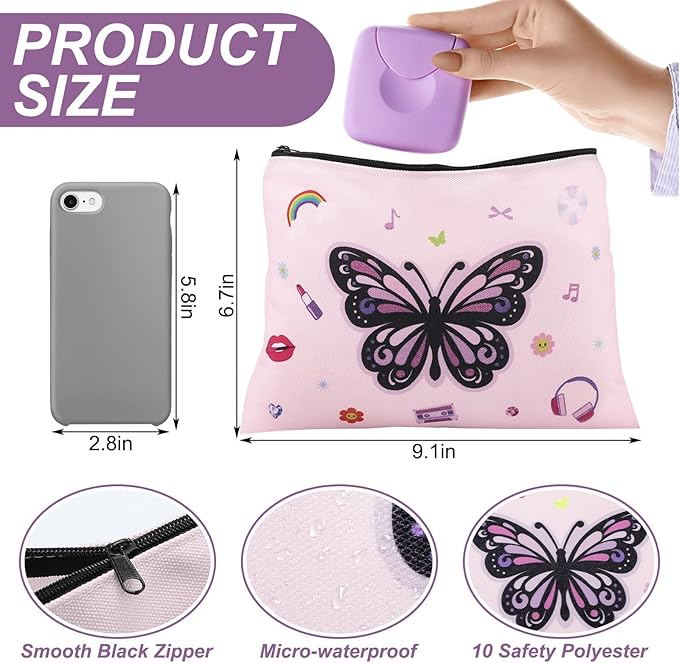 - Spacious Space: the size of the purple butterfly makeup bag is 9.1 x 6.7 inches/23 x 17 cm, which is enough to hold all your necessary cosmetics, and easily store headphones, mobile phones, change, sunglasses, keys, etc., so that they are well organized; the size of the makeup bag is suitable for putting into handbags, backpacks or travel cases, serving daily travel or travel