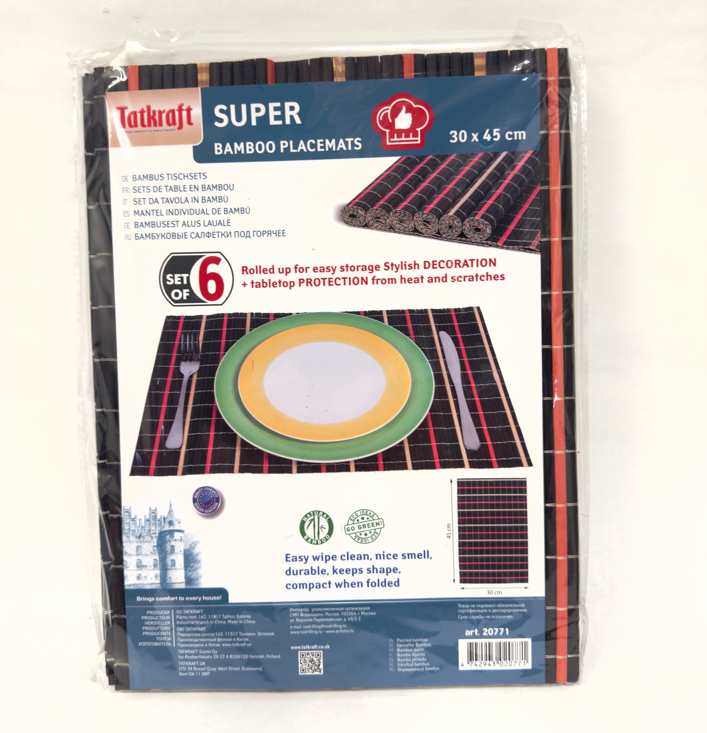 Pack of 6 – Tatkraft Super Natural Bamboo Table Heat Resistant Placemats – Item #8241