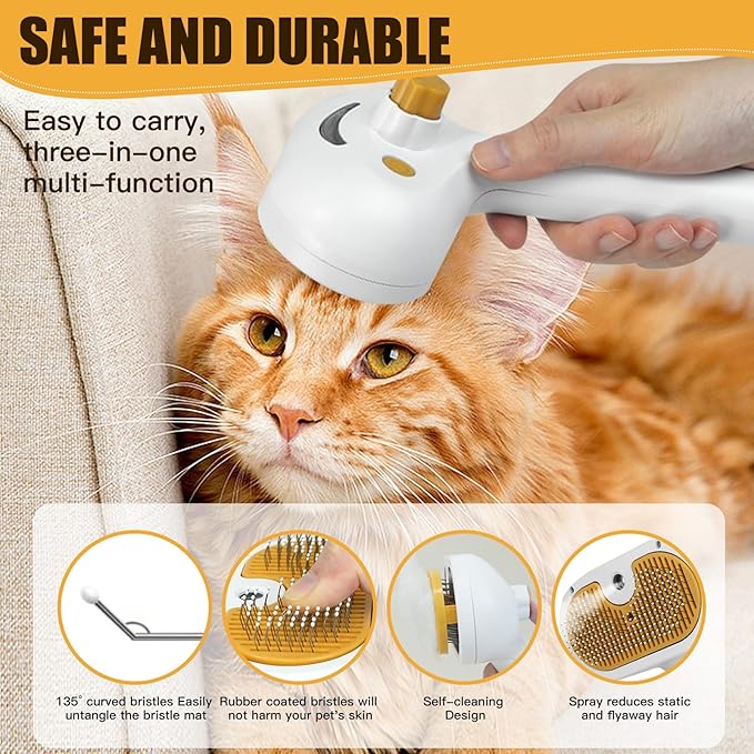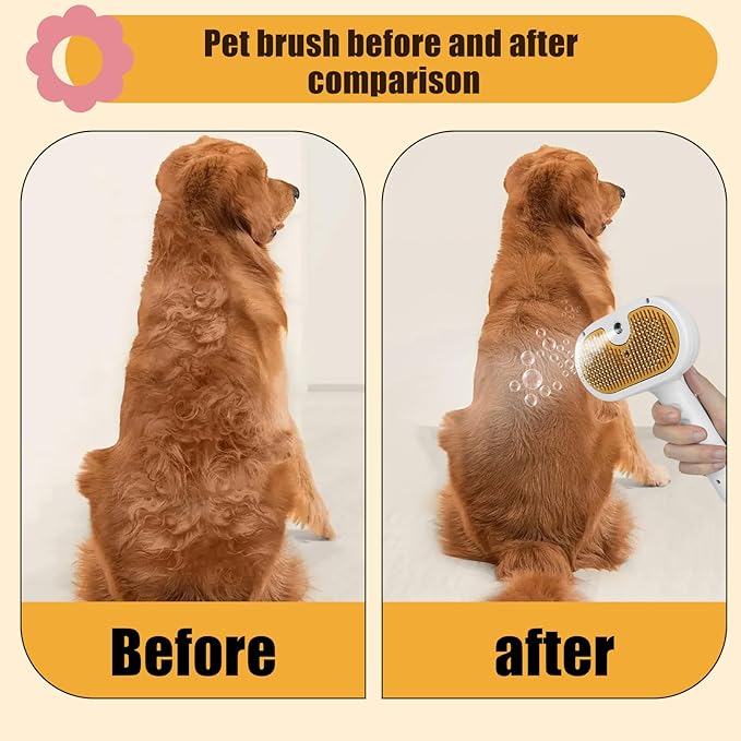 - Ultimate Pet Grooming Solution: This Pet Steam Brush provides a convenient and efficient grooming experience for your furry friends. Perfect for both cats and dogs, it helps in gently removing loose hair and tangles without causing any discomfort.