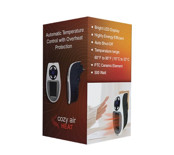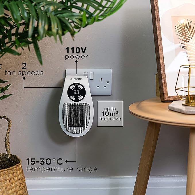 - Smart small space heater: 4.3 x 2.8 x 6.5 inch compact size makes it easy to carry it around wherever I want without any wires. The UL listed plug in heater mounts right on the receptacle and it doesn’t take up floor space or have a cord laying on the floor to trip on. Modern look make it blend well in a living room or bedroom or other areas of the house since it’s not a big eyesore like a space heater.