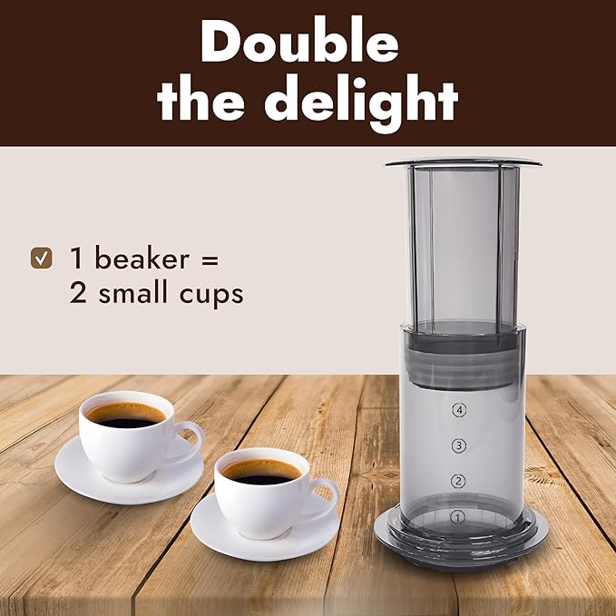 - Large Capacity Beaker: Holds up to 7 oz for two small espresso press servings; perfect for brewing multiple cups; designed to work as a compact coffee press for both home and travel; ideal for users needing a portable option without sacrificing taste
