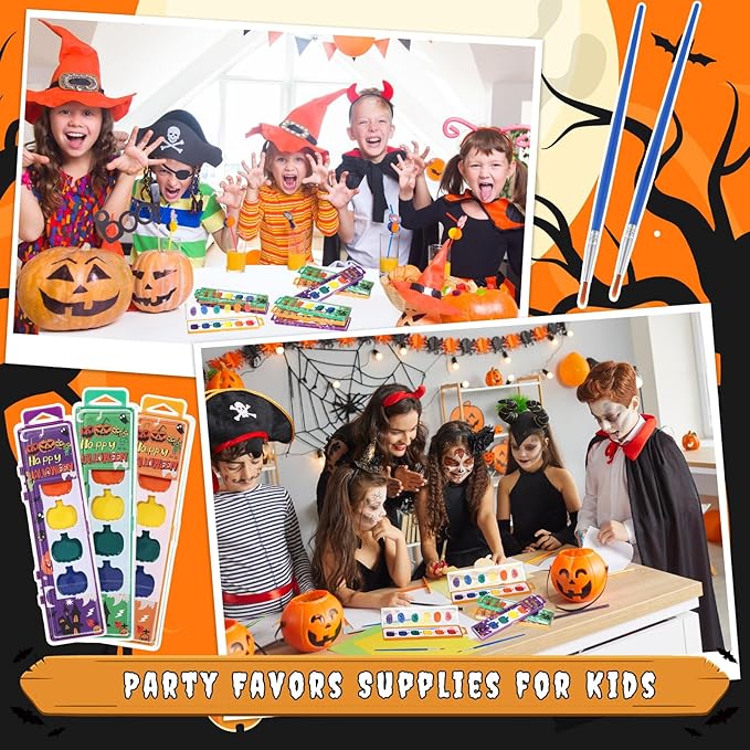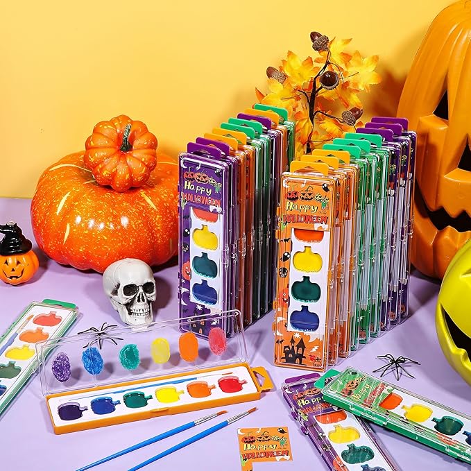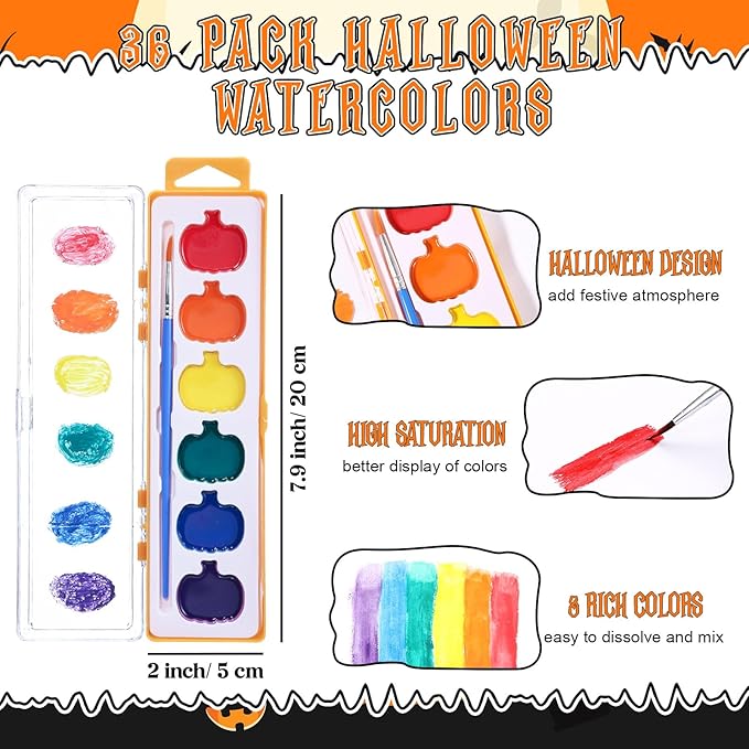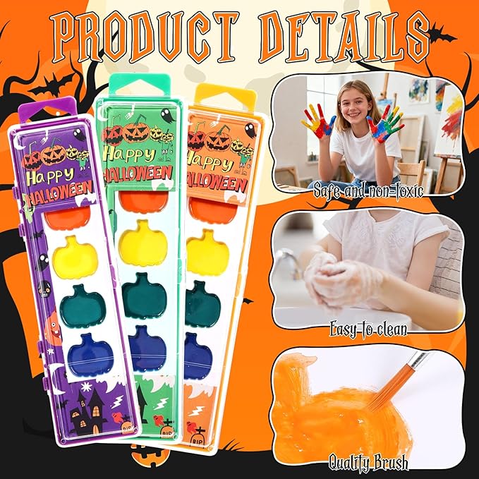 - Exquisite Design: our washable watercolors paint set for kids design elements are colorful and interesting, the paint box has a total of 3 colors, each palette is designed in the shape of a pumpkin, and comes with a Halloween theme card, which can be Makes it an ideal choice for school theme parties or first day celebrations