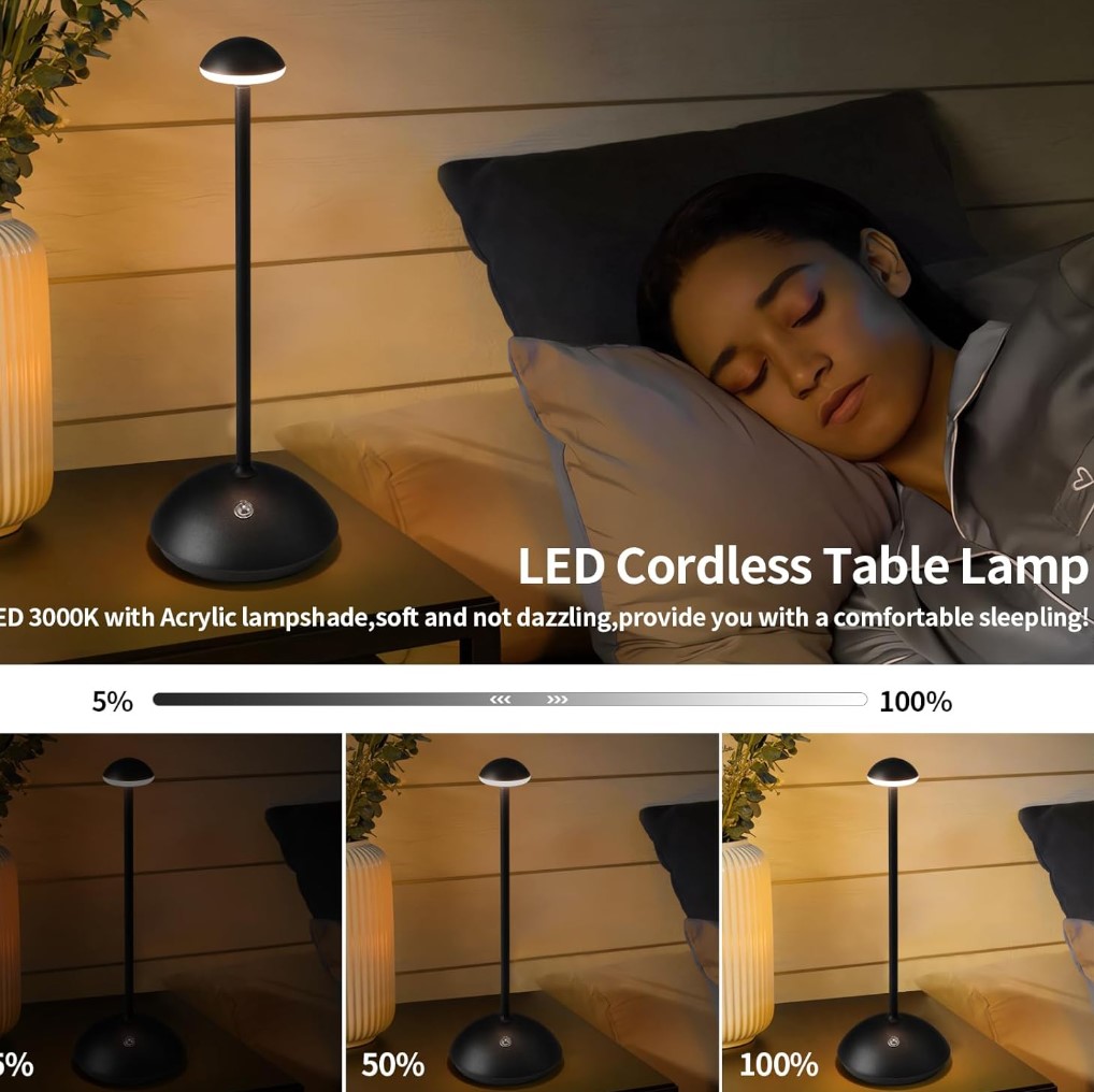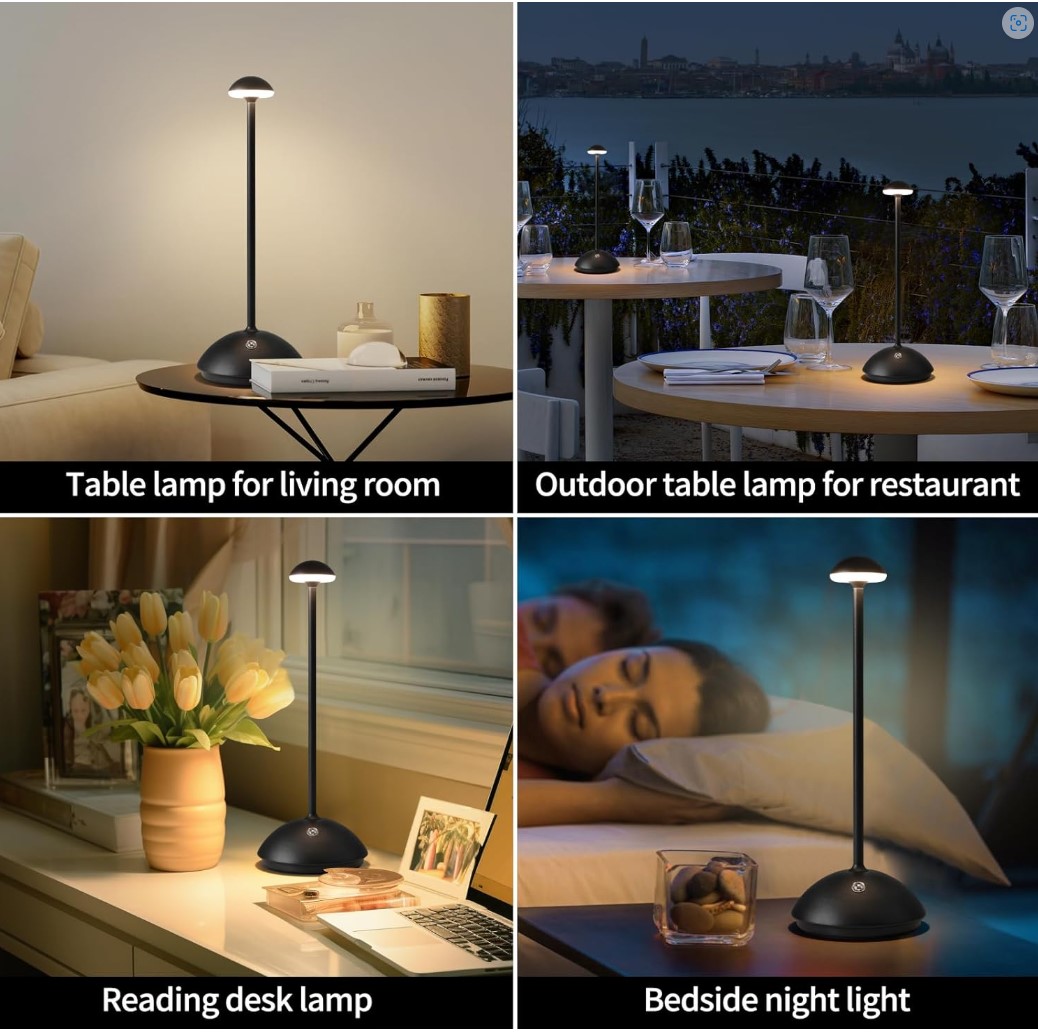 - Modern Design: The cordless table lamp use a acrylic shade, the lampshade is like a mushroom, that looks very fashionable and lovely. The cordless lamp is made of strong and lightweight aluminum with matte coating process to make the table lamp look durable