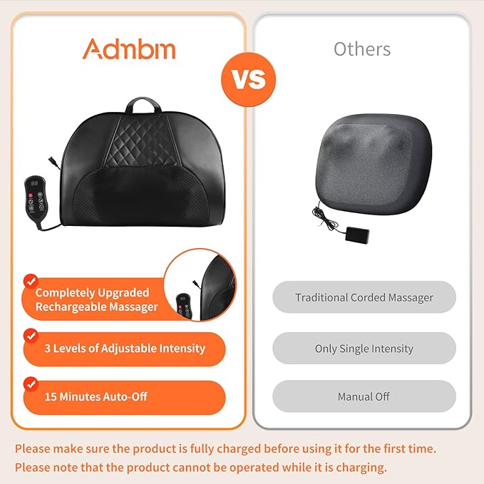 - Cordless & Rechargeable,Relax Anytime, Anywhere: Enjoy full freedom of movement with the Admbm cordless neck and back massager. Fully rechargeable and portable, it’s perfect for home, office, or even on the road. (Note: Cannot be used while charging.)