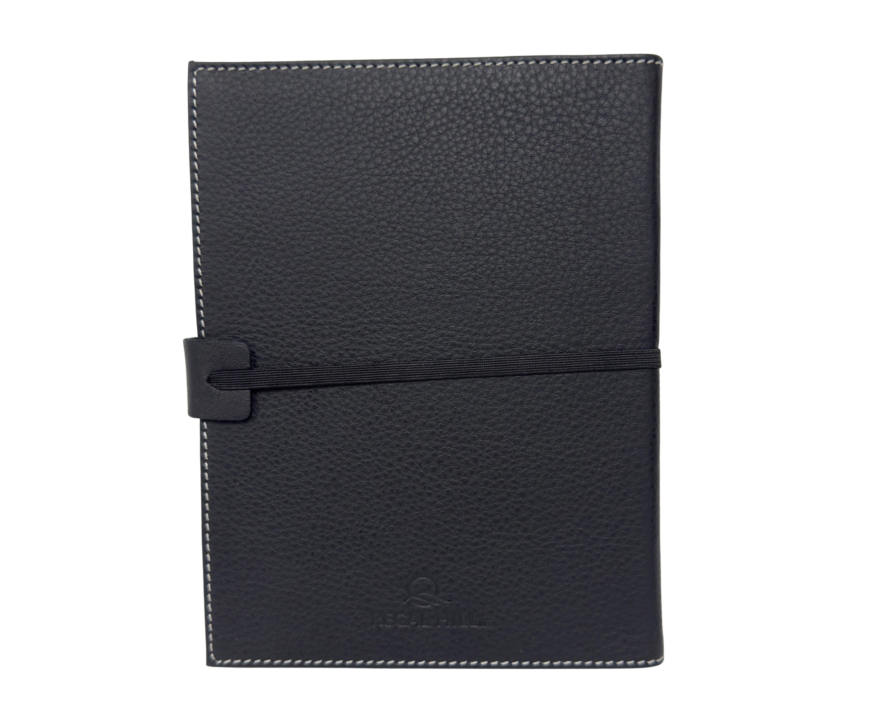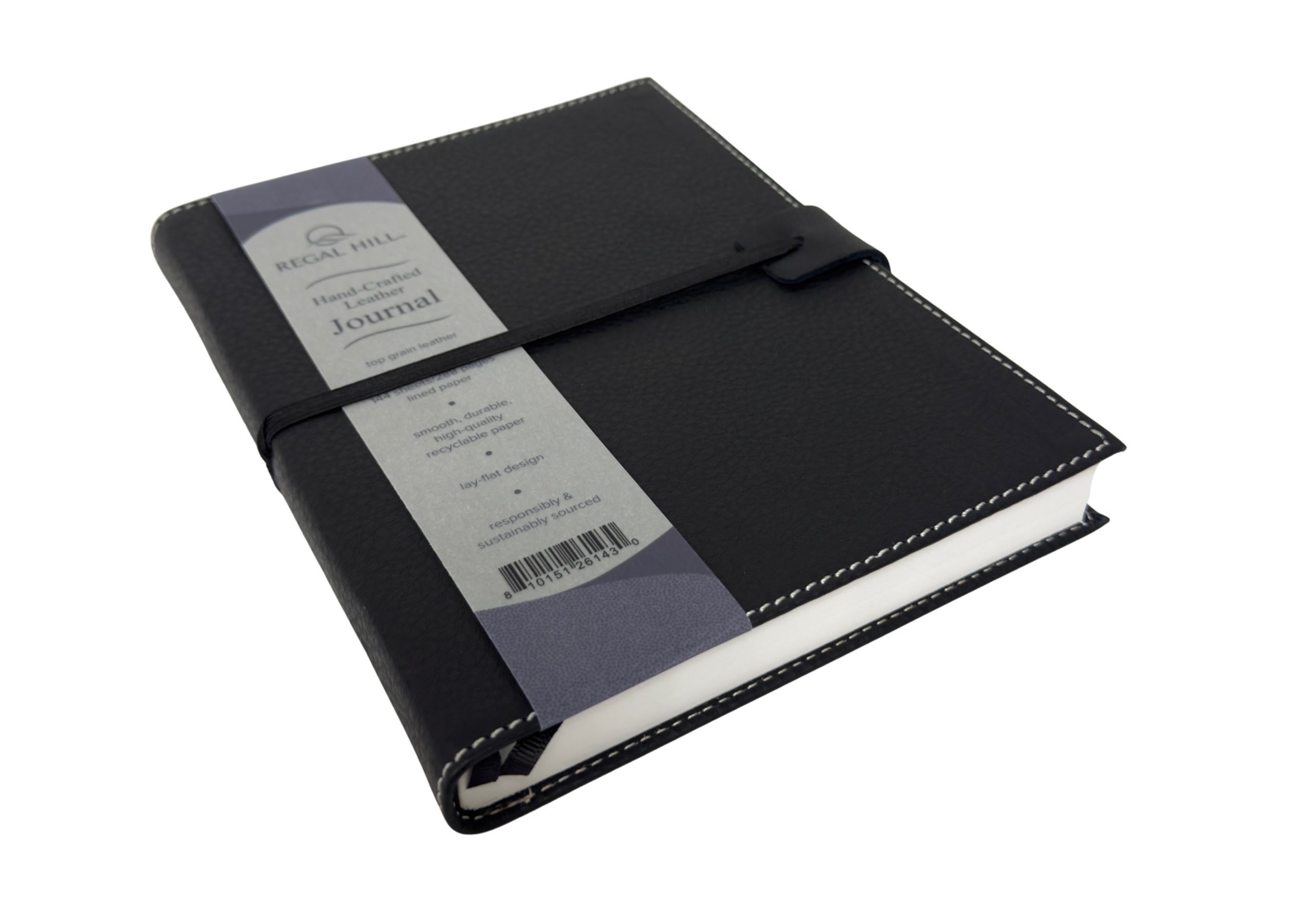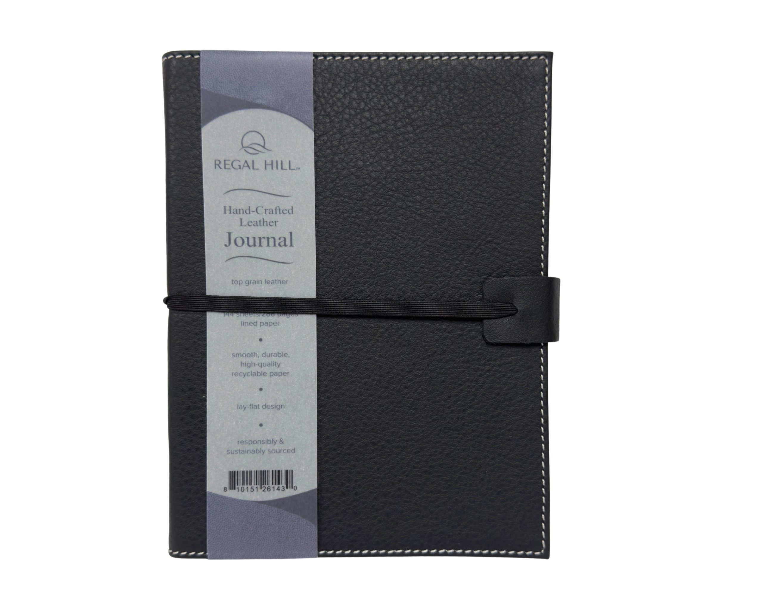 Regal Hill Top Grain Leather Journal – Narrow Rule – Black with White Stitching – 6″x 8″ – Item #8278 103400001
