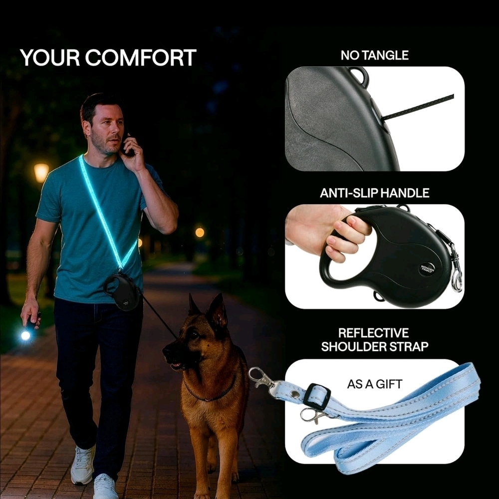 - HANDS FREE CONTROL & COMFORT: Includes padded shoulder strap to turn your leash into a full hands free dog leash. Great for owners walking strong dogs who pull. Reduces arm fatigue and improves leash control. Perfect for hiking, jogging, or training dogs that need both freedom and structure. A must-have for dog parents handling large, high-energy pets in daily or active routines.