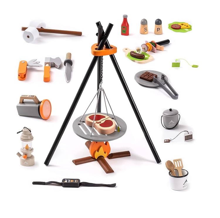 ROBOTIME Kids Camping Toys Set – 45PCS – Pretend Play Food Wooden – Item #7360