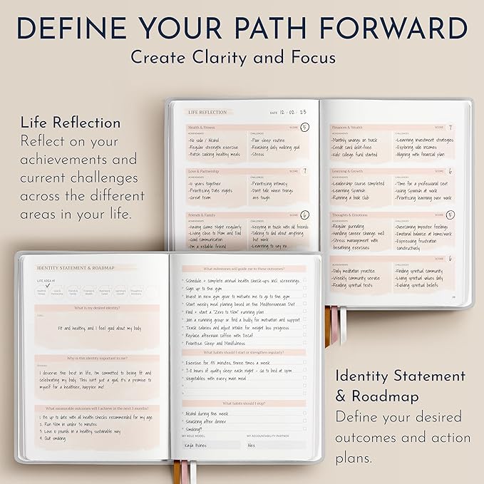 - Weekly Focus for Powerful Progress – Dive into weekly planning sessions that don’t just map out tasks but nourish your soul. Reflect on your victories, learn from your journey, and adjust your sails as you navigate the seas of success. This goal journal is more than a tool; it’s a companion on your journey to self-discovery and achievement.