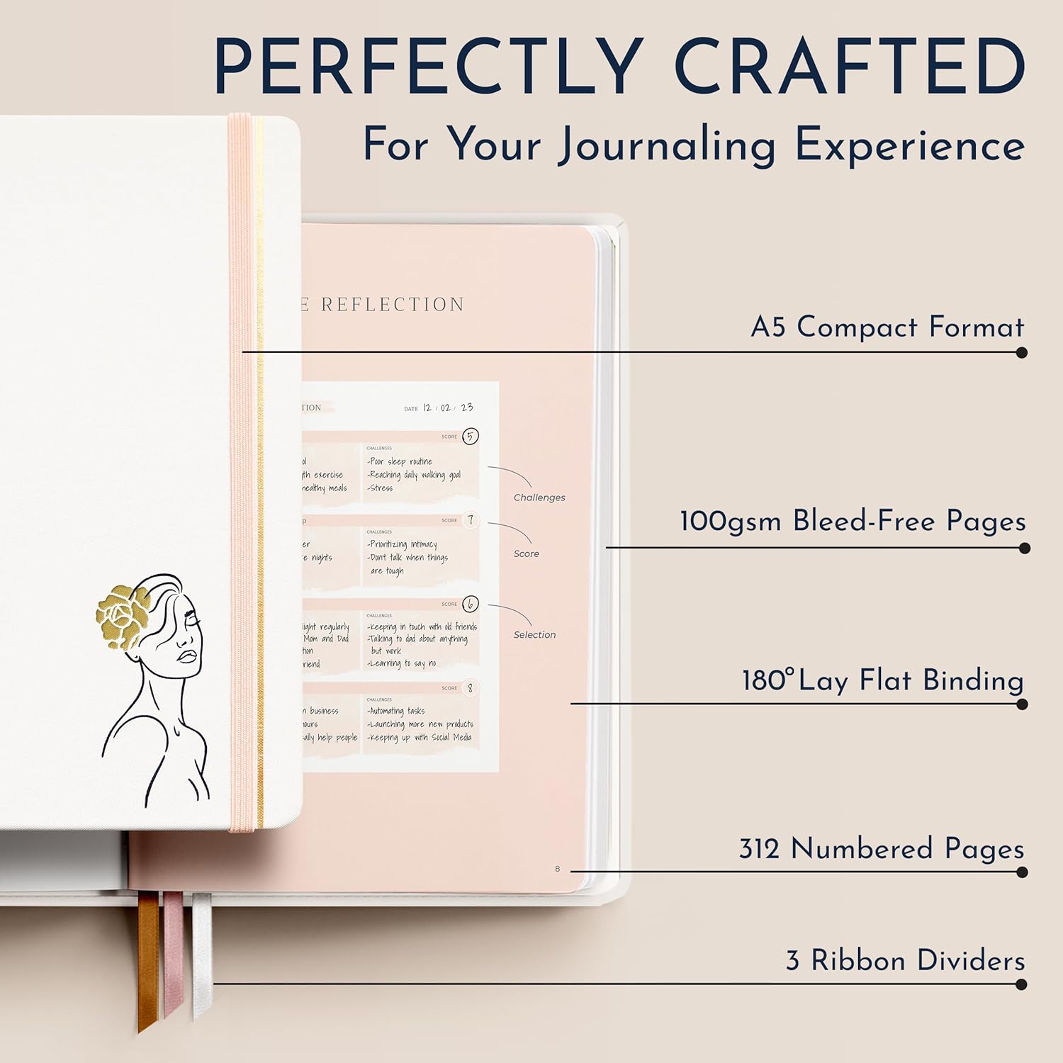 - Designed for the Women on the Go – Our elegantly crafted A5 journal is your portable powerhouse, with bleed-free pages and a 180 degree lay-flat binding that turns any space into a sanctuary for planning. With numbered pages and three ribbon dividers, you’ll find peace in organization and beauty in the details of your day-to-day narrative.