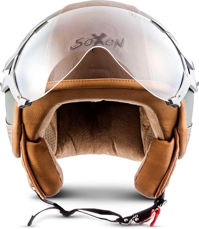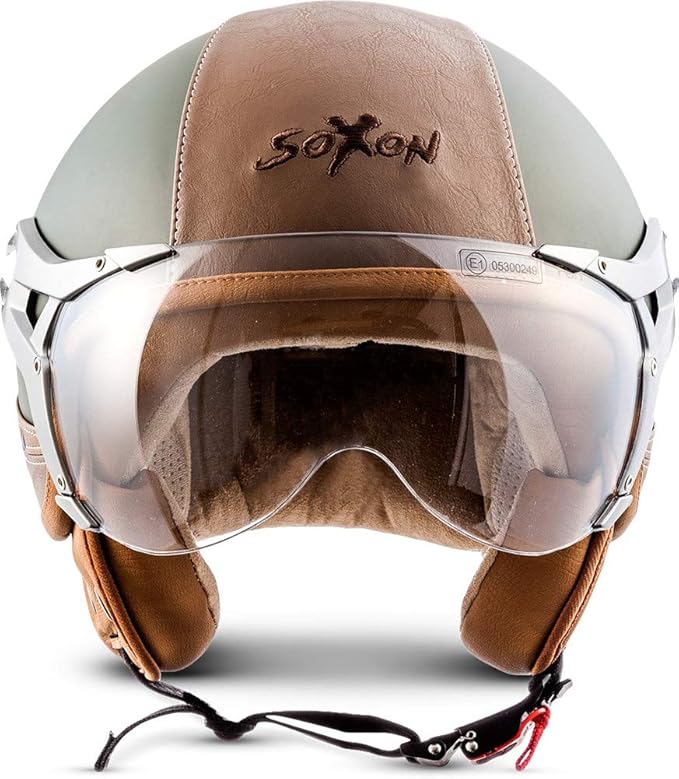 - EUOPEAN STYLE incl. metal security ring: This helmet is made in cooperation with the in 2012 established motorcycle helmet brand SOXON GERMANY. It also comes with a metal security ring, to easy secure your helmet to your scooter.