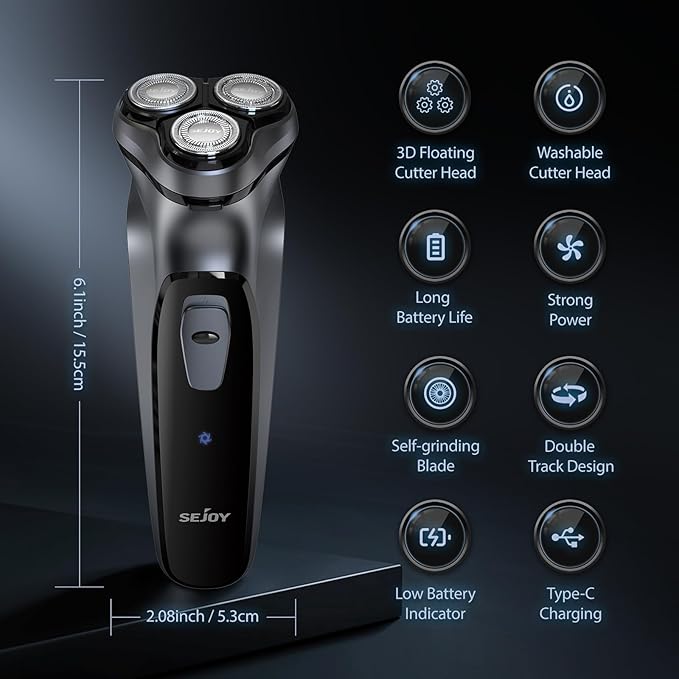 Sejoy Electric Razor for Men – Electric Face Shaver – Cordless – Washable – Rechargeable – Item #8583