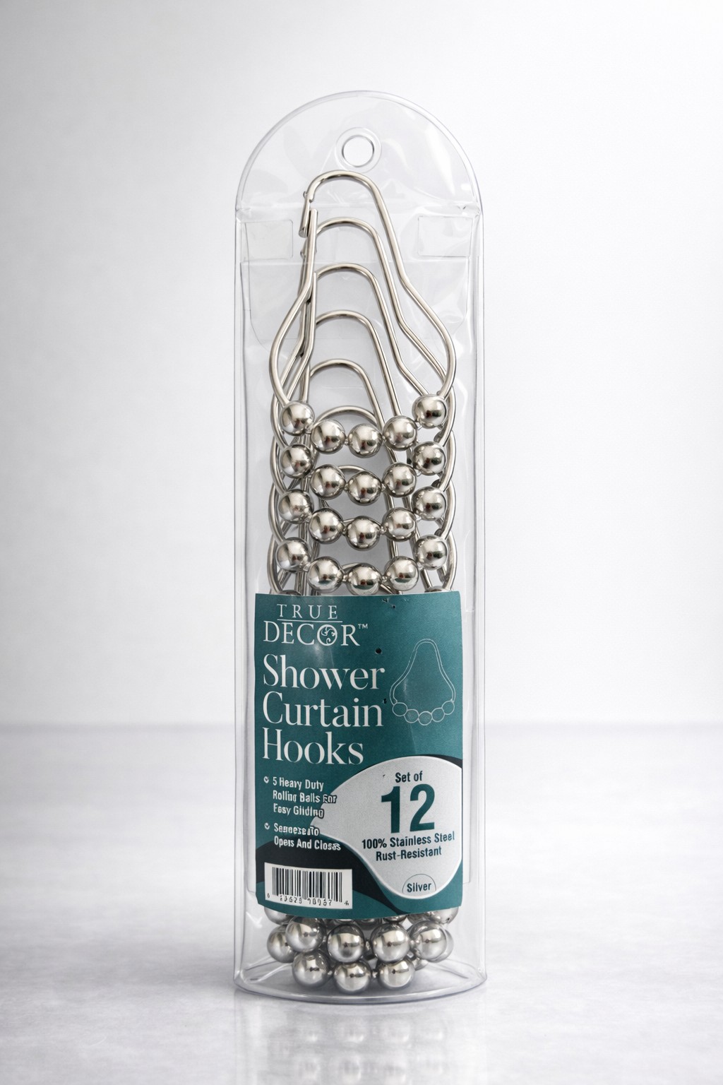 - Heavy duty closing hooks – The hooks are strong enough to hold a heavy shower curtain or liner. They are sealed shut, making it impossible for the curtain to slip off the rings.