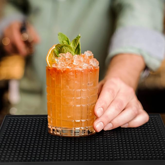 - Measuring 12″ x 6″, these bar rubber spill mat can be used in a variety of ways, making them a versatile addition to your home bar countertop or kitchen.