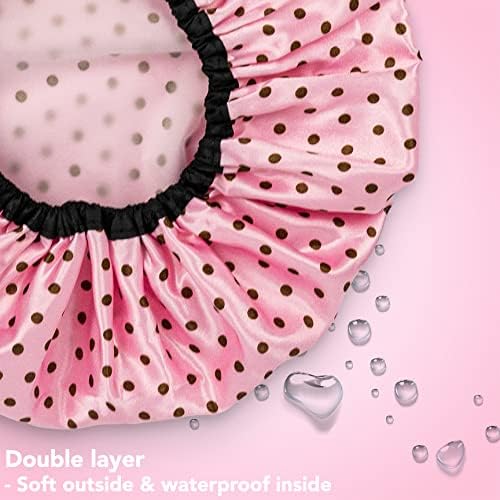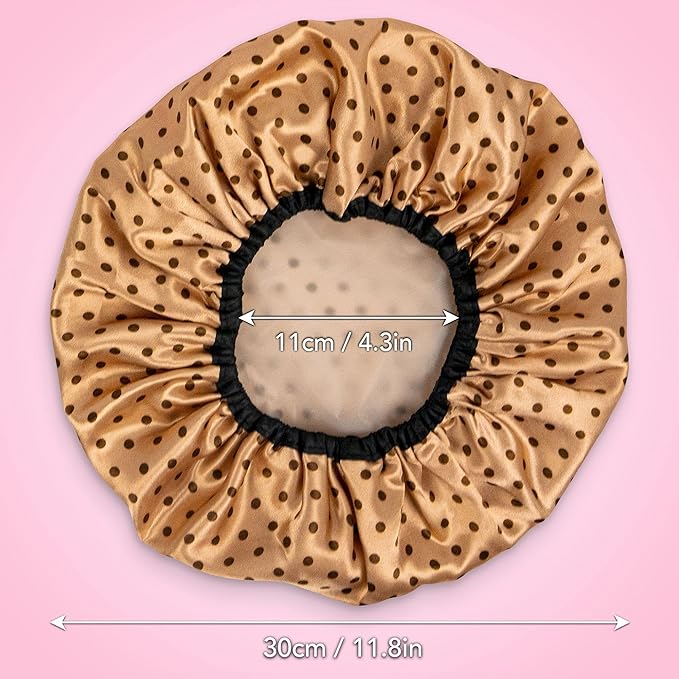 - STYLISH SHOWER CAP HAIR COVER! Consists of three original colors including pink, blue and brown with a modern polka dot design.