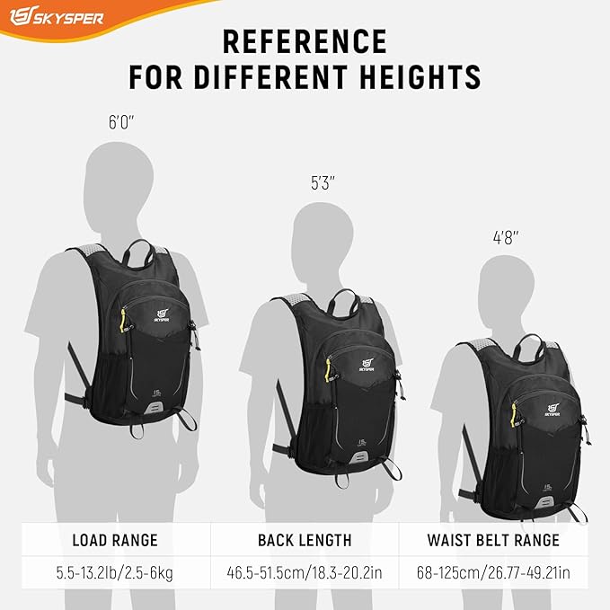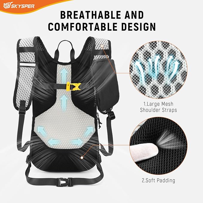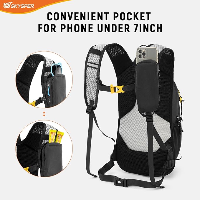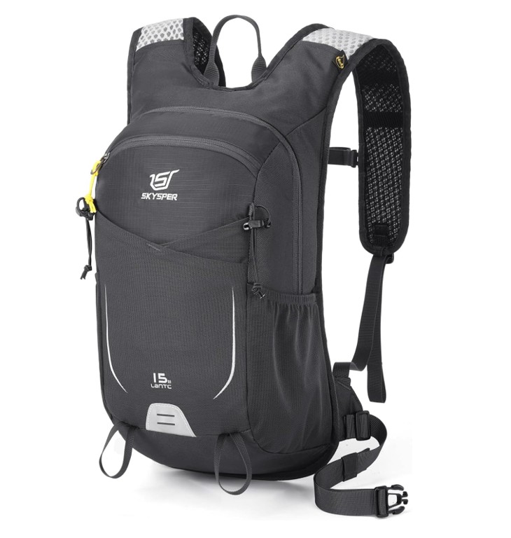 SKYSPER 15L Hiking Backpack – Daypack – Lightweight – Shoulder Pocket – Women & Men – Black – Item #8562