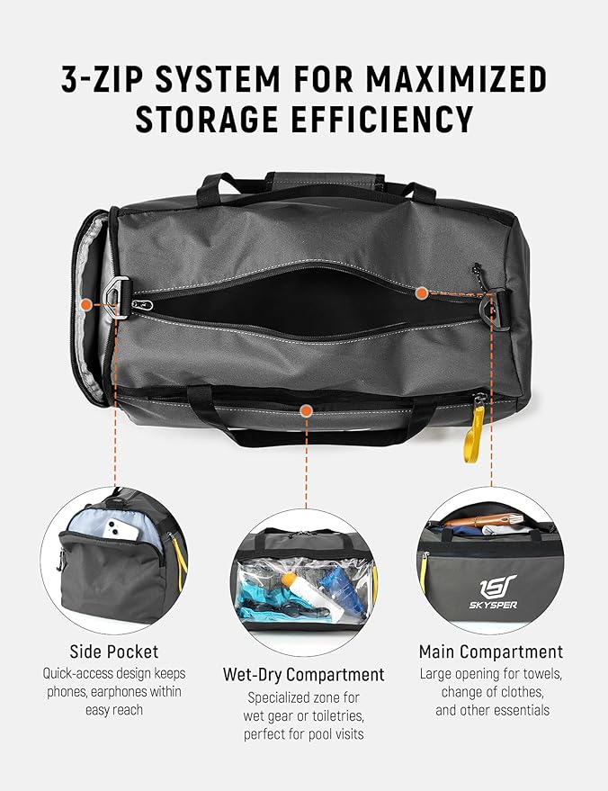 - Wet & Dry Separation: This gym bag has a wet pocket that is roomy to hold sweatshirts and other wet or dirty clothes. SKYSPER gym bag women men is the best companion for travel or gym sports.