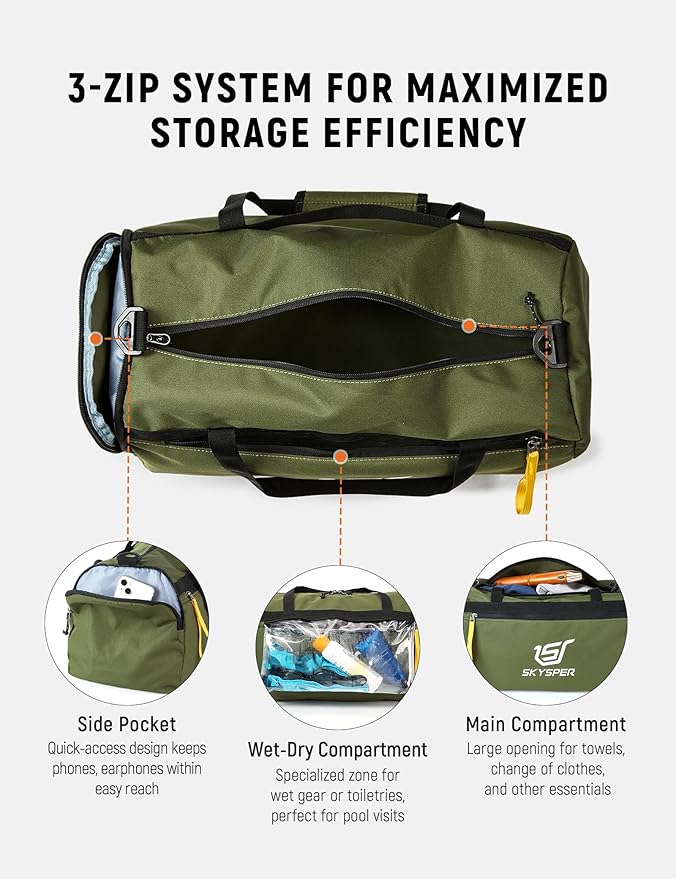 - Wet & Dry Separation: This gym bag has a wet pocket that is roomy to hold sweatshirts and other wet or dirty clothes. SKYSPER gym bag women men is the best companion for travel or gym sports.