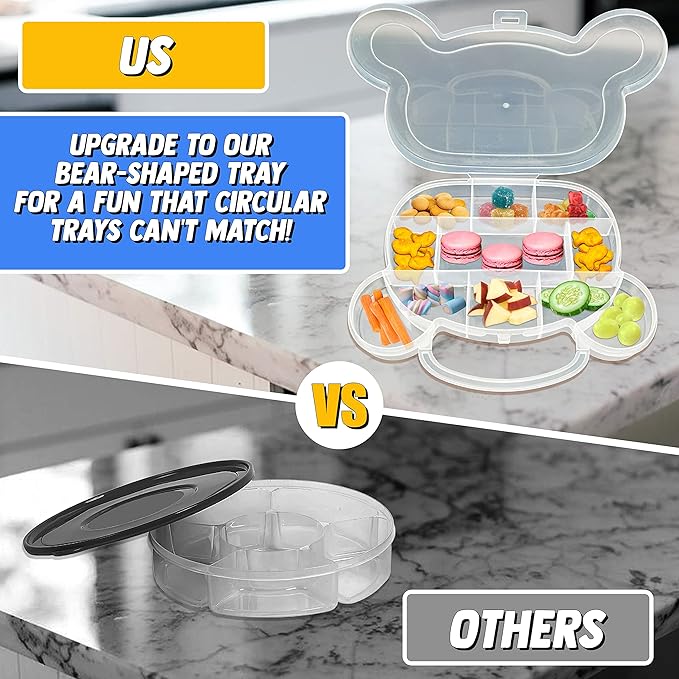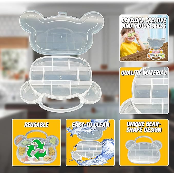 - Fun & Functional Snack Tray – The Snack Tray Bear Shape is a good snack container, offering a unique design that doubles as a game. This snackle box container makes snacking an enjoyable experience.