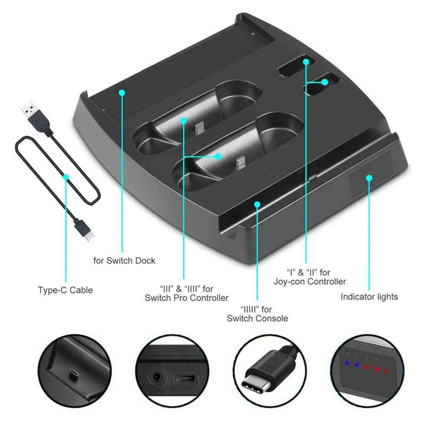 - Note: Only charges Nintendo Switch and does NOT display on TV. Original Switch Dock must be used for TV Display.