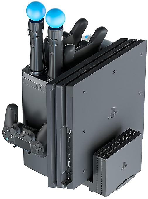 - Stable Support for All PlayStation 4 Versions: Securely mount any version of the PlayStation 4—PS4, PS4 Slim, PS4 Pro, or PSVR—on the vertical stand, keeping your console stable and well-ventilated (console sold separately).