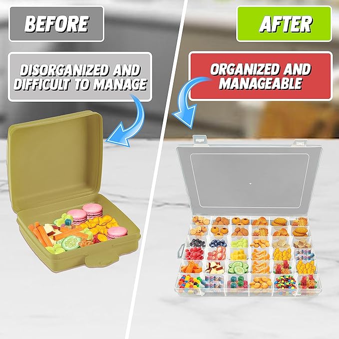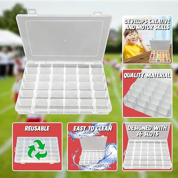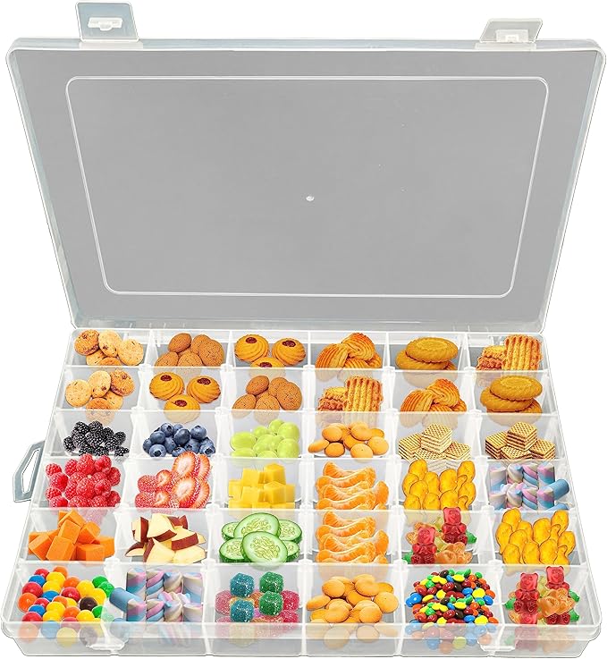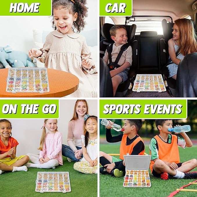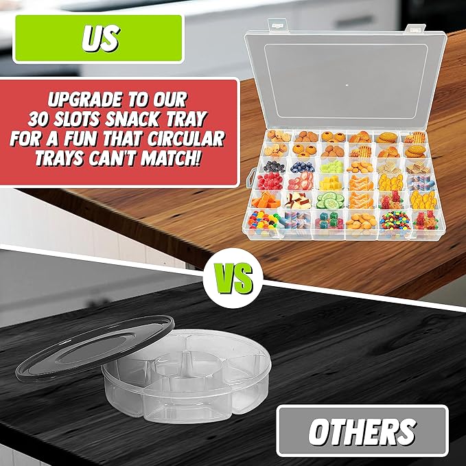 - Tackle Box for Snacks – The Snack Tray with 36 Slot is a good snack container, offering a unique design that doubles as a game. This snackle box container makes snacking an enjoyable experience.