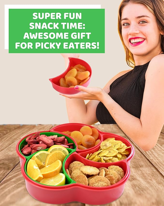 - Fun & Functional Snack Tray – The Snack Tray Flower-Shaped is a good snack container, offering a unique design that doubles as a game. This snackle box container makes snacking an enjoyable experience.