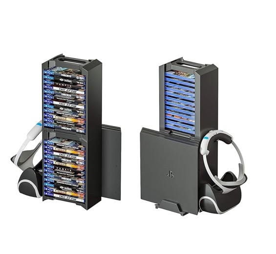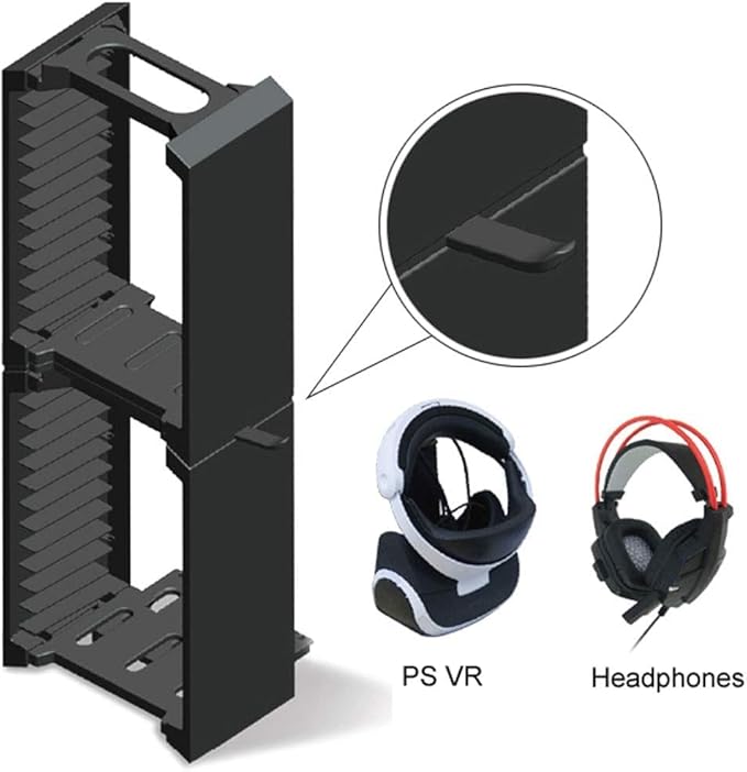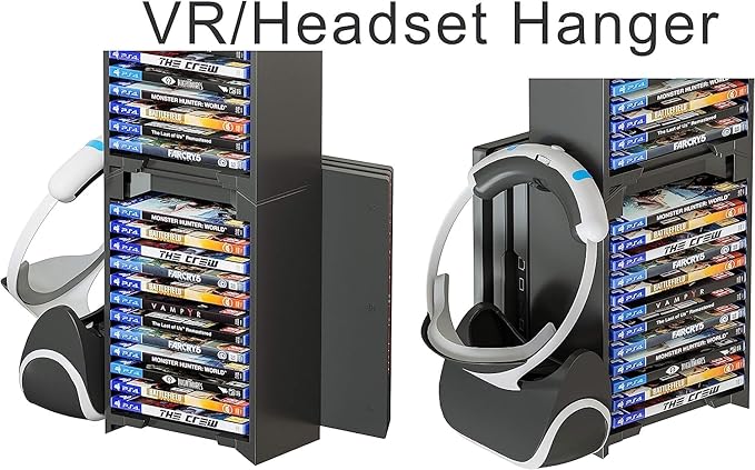 - Organized Media and Console Setup : Our vertical stand video game storage tower or video game shelf helps keep your PS5/ PS4/ PS3/ Xbox Series S & X/Xbox one Game and PSVR headset neatly arranged, providing a clutter-free gaming area.