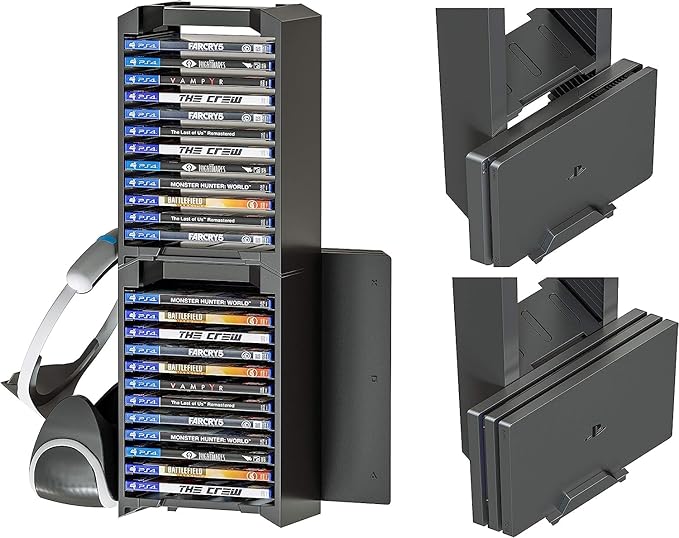 - Multi-Console Compatibility: This game organizer works as a vertical stand and organizer for PS4, PS4 Slim, PS4 Pro, and Xbox One S consoles, enhancing your setup versatility.