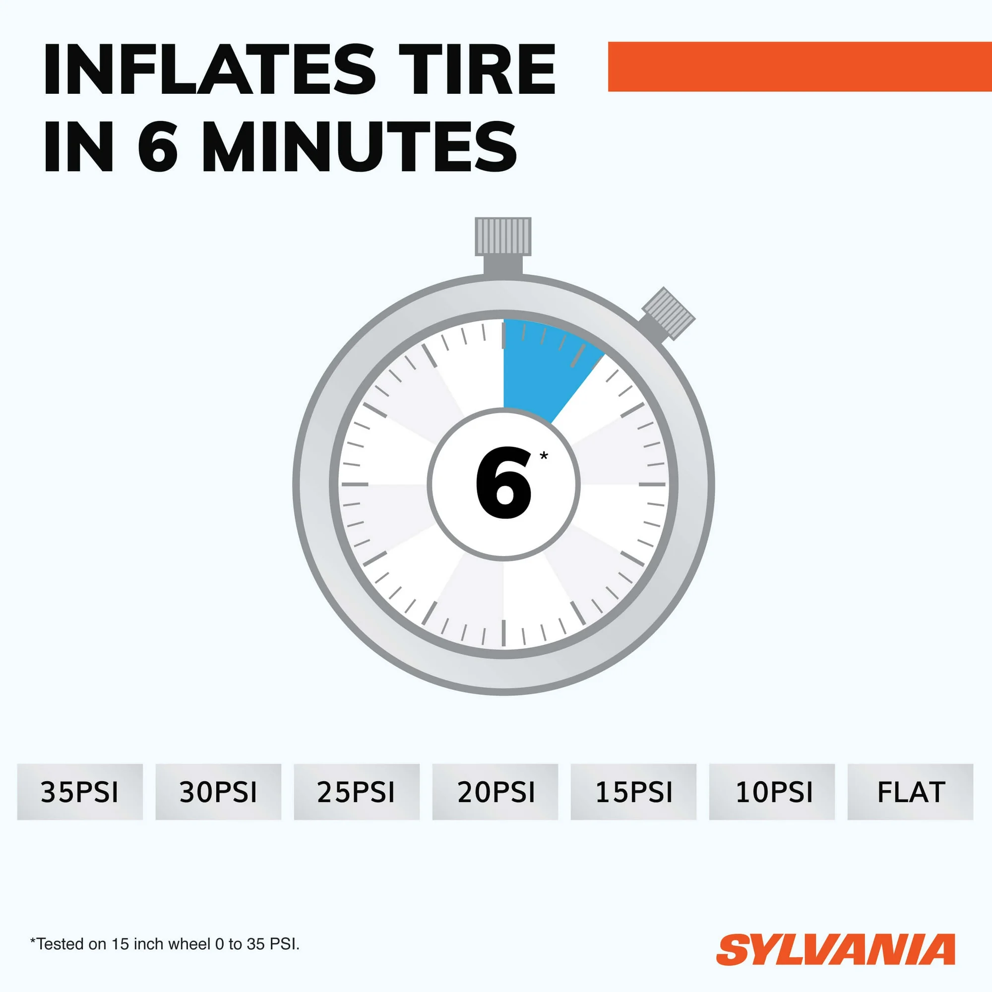 - Rapid Inflation: Inflates an average 15-inch tire from flat to 35 PSI in 6 minutes, with an industry-leading 15 minutes of continuous operation before a 15-minute cooling period.